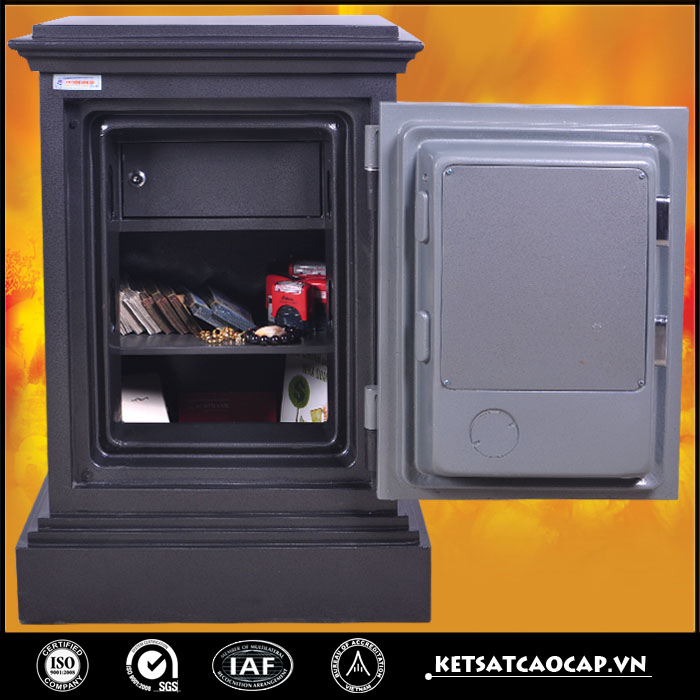 Nhờ sử dụng chất chống cháy, két sắt cánh đúc KD45 đen khóa cơ có khả năng chịu nhiệt cao, có thể ~ 1000 độ c, giúp các loại giấy tờ, hồ sơ cũng như các giá trị tài sản khác được an toàn, không bị phá hủy trong vòng một giờ đồng hồ.