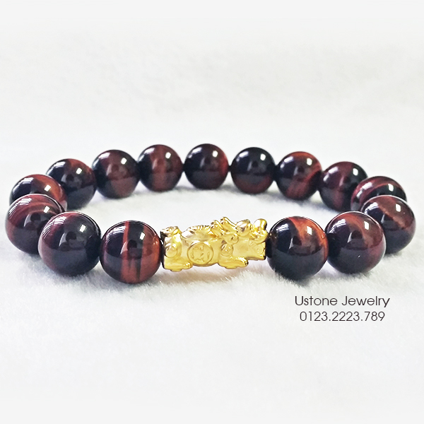 Vòng tay mắt hổ đỏ mix tỳ hưu bạc mạ vàng TH-1622.20