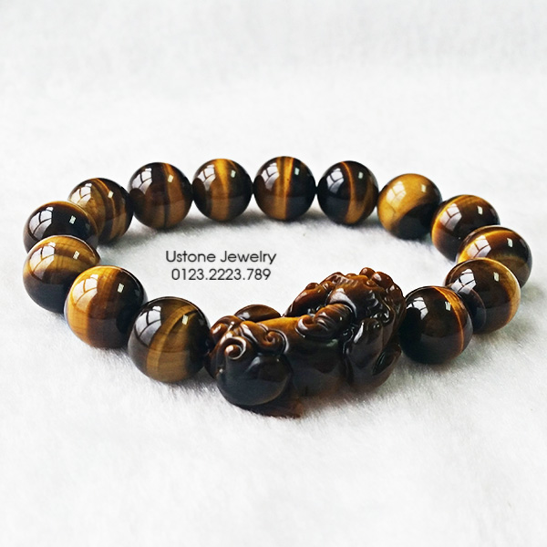 Tiếp theo, một trong những mẫu vòng tay đá mắt hổ vàng nhận được sự yêu thích của cánh mày râu phải kể đen vòng tay đá TH-1603.12 với charm mix hình tỳ hưu đá mắt hổ – linh vật mang cát khí hàng đầu trong phong thủy, được tin tưởng sẽ đem lại nhiều may mắn, tài lộc cho người sở hữu, đặc biệt với những người làm công việc kinh doanh. Theo phong thủy, nguồn năng lượng mạnh mẽ của đá mắt hổ kết hợp với tỳ hưu đá sẽ giúp người đeo thêm tự tin, quyết đoán và mạnh mẽ hơn, từ đó có nhiều thành công hơn trong cuộc sống và công việc.